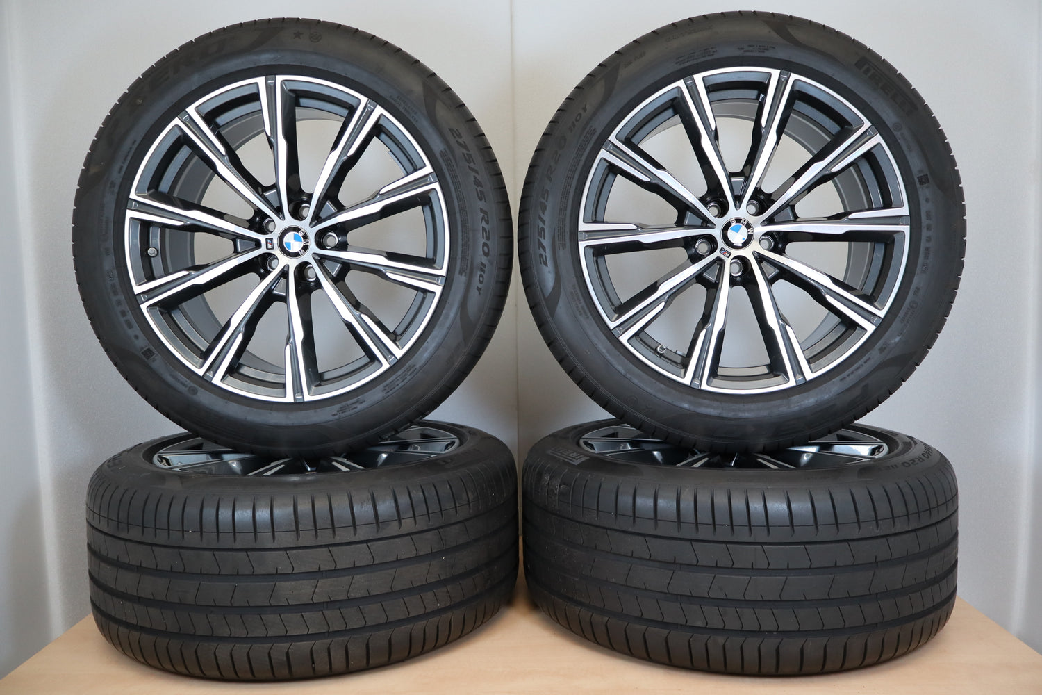 Dieser BMW Komplettradsatz im eleganten Styling 740 M Design passt eintragungsfrei zu X5 (G05) und X6 (G06) Modellen und überzeugt mit hochwertigen Pirelli P Zero Sommerreifen sowie praktischen Runflat-Eigenschaften. Die bicolor Felgen in Orbit Grey mit glanzgedrehten Akzenten sind mit RDKS-Sensoren und Nabenkappen ausgestattet, lediglich ein Rad weist leichte Schönheitsfehler auf. Die Räder sind sofort fahrbereit montierbar.