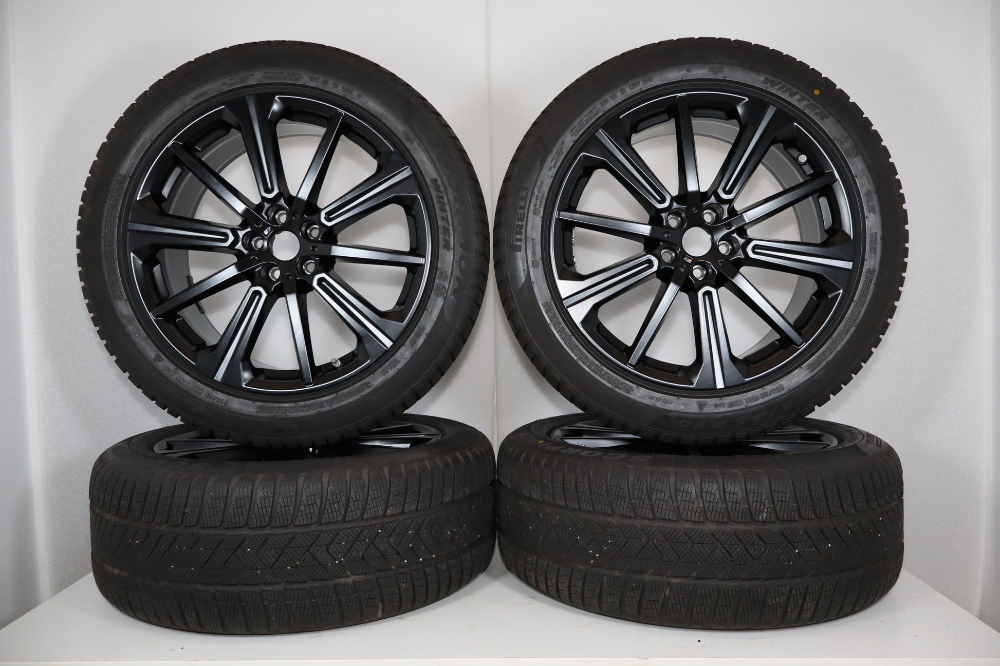 Dieser BMW Komplettradsatz mit Styling 748M Felgen in mattem Schwarz passt eintragungsfrei zu X5 (G05) und X6 (G06) Modellen und überzeugt mit hochwertigen Pirelli Scorpion Winter Reifen inklusive Runflat-Technologie. Die 20 Zoll Räder verfügen über gut 7mm Profiltiefe und wurden somit kaum gefahren, zudem sind original Reifendrucksensoren bereits verbaut. Die Räder sind sofort fahrbereit montierbar.
