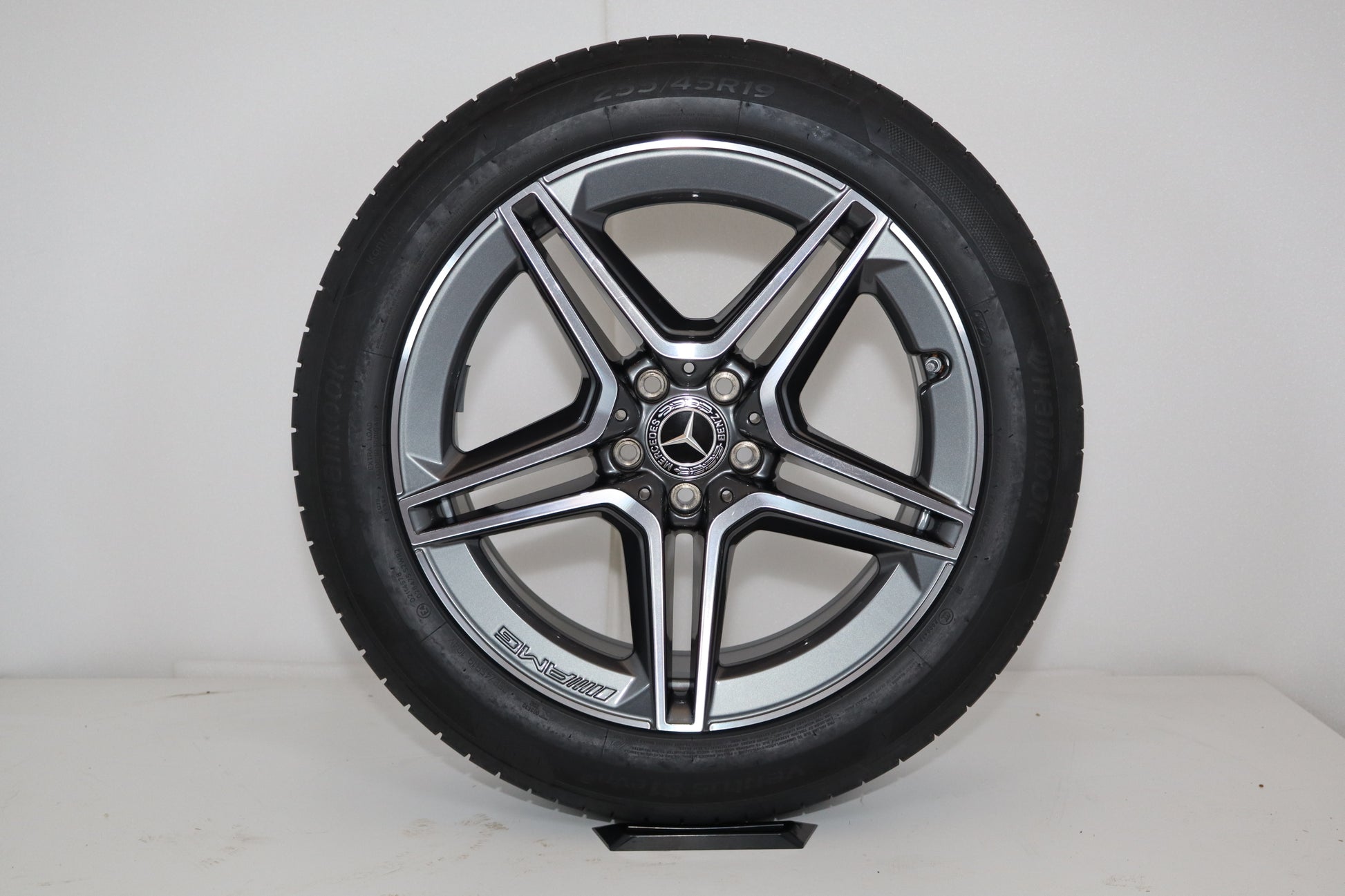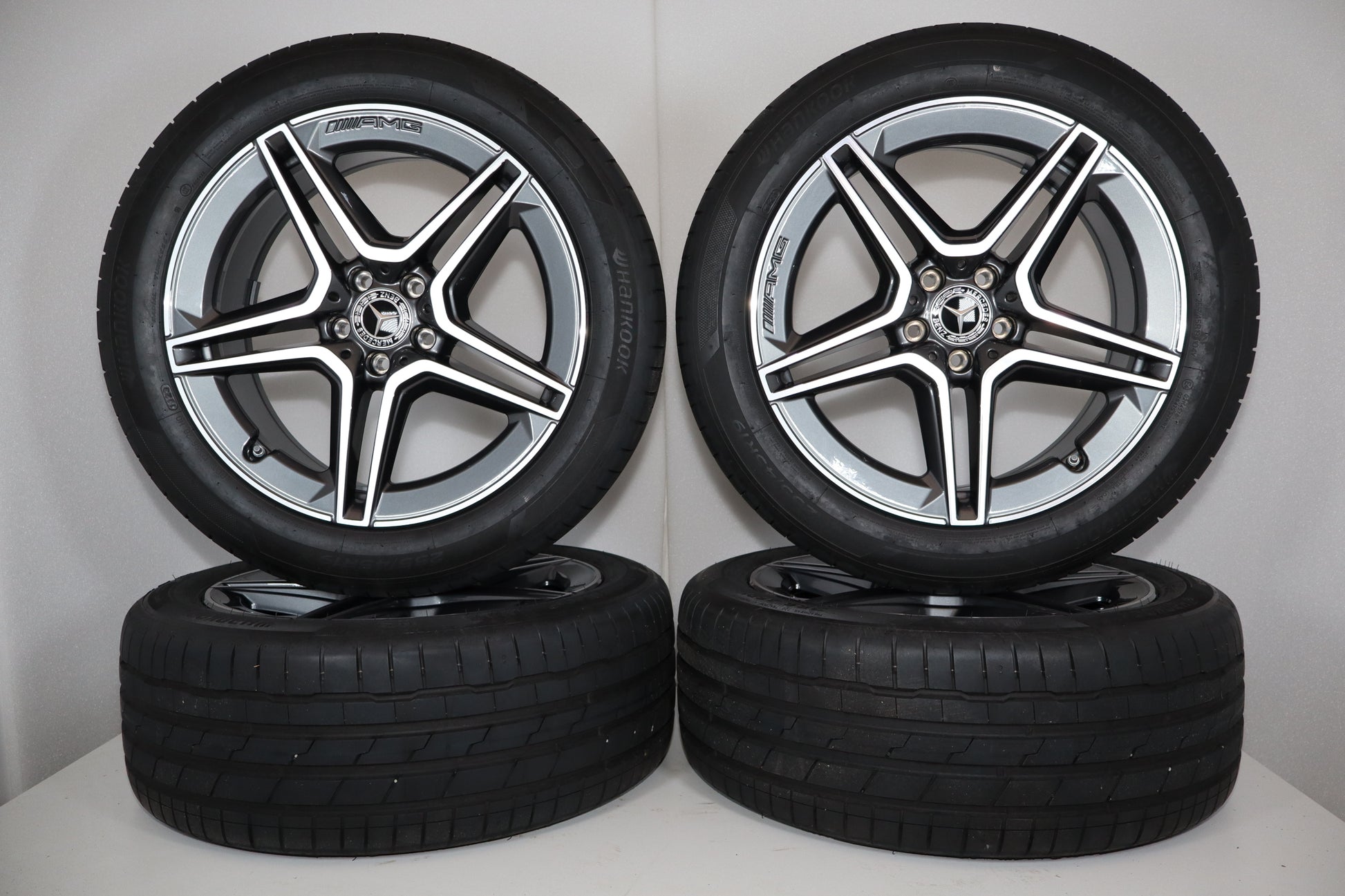 Dieser Mercedes Komplettradsatz ist ohne TÜV-Gutachten direkt mit der S-Klasse W223 nutzbar und stammt aus einer Neuwagen-Demontage mit minimaler Laufleistung. Die hochwertigen 19-Zoll Felgen in Tremolit-Metallic mit glanzgedrehter Oberfläche sind mit Hankook Ventus S1 evo Sommerreifen und RDKS-Sensoren ausgestattet. Die Kompletträder sind sofort fahrbereit montierbar.