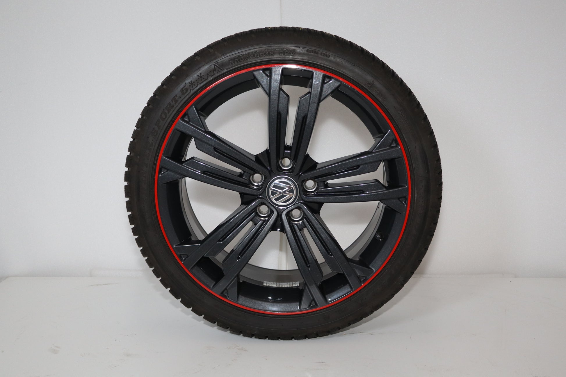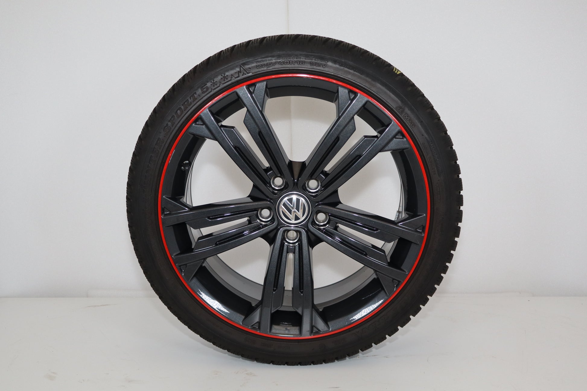 Dieser gebrauchte VW-Original-Radsatz mit Winterreifen passt eintragungsfrei zu Golf-Modellen und überzeugt durch die hochwertigen Dunlop Winter Sport 5 Reifen mit über 7mm Profiltiefe. Die anthrazitfarbenen Sevilla R-Line Felgen mit rotem Akzent setzen sportliche Akzente und sind inklusive Nabenkappen dabei. Die Räder sind sofort fahrbereit montierbar.